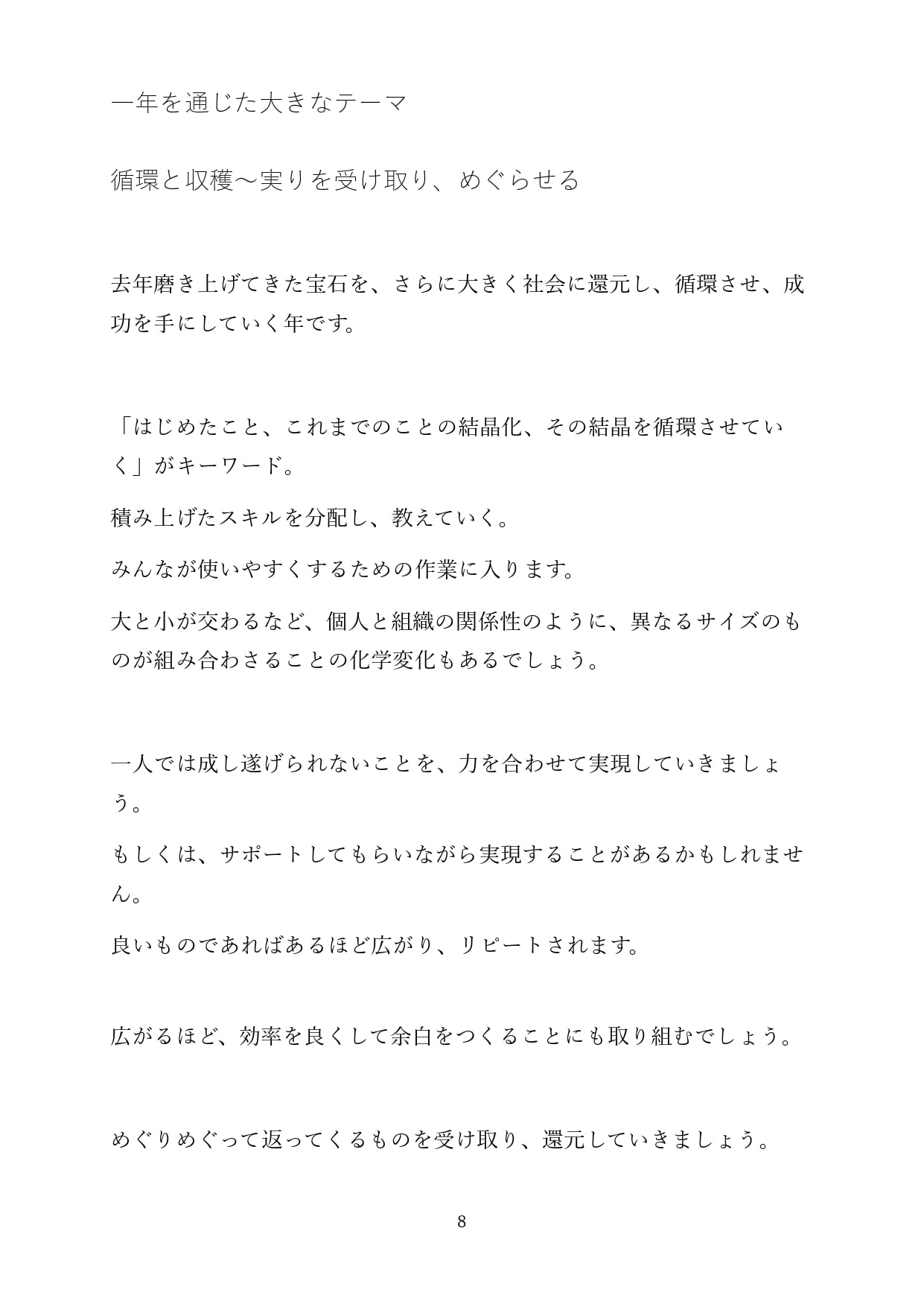 ※こちらはイヤーナンバー8番の方の冊子版メッセージです※